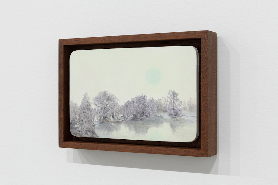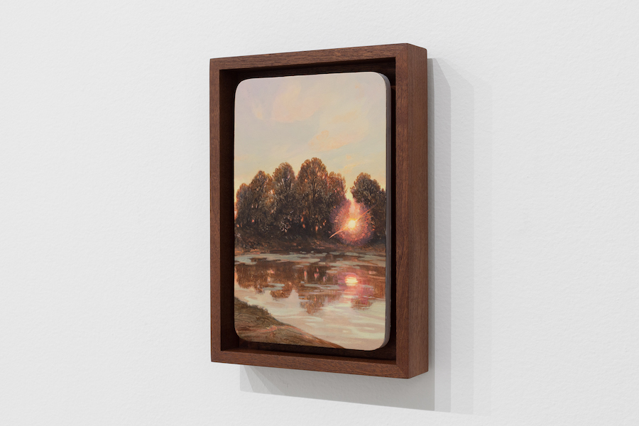 Angela Lane paints wondrous scenes of atmospheric and celestial phenomena. Mysterious messengers or omens hover in the skies, just in sight but almost always beyond our comprehension. Her small landscapes are grounded in the real world but seek out otherworldly or preternatural experiences. They ask us to look up and out, but also back — especially to the long history of artistic and scientific exploration into sky-bound phenomena, and the larger questions surrounding the mysteries of art and existence they speak to.