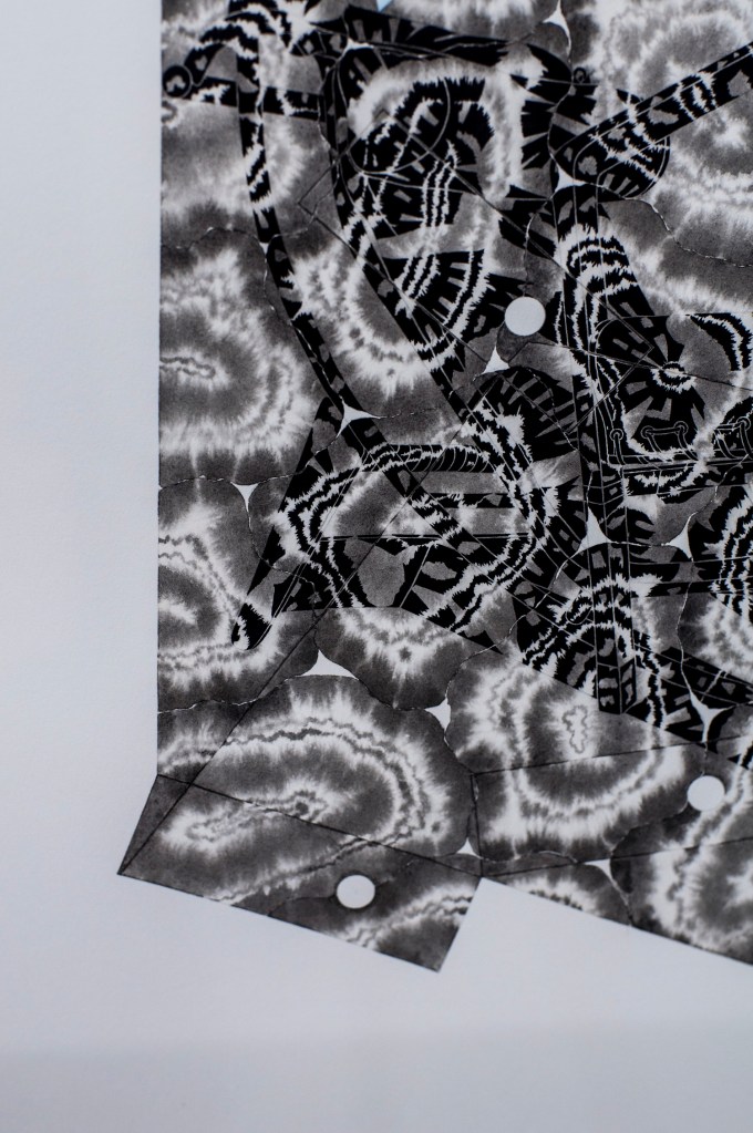 These references situate Hill’s concerns in relation to often-gendered historic debates around art’s relationship to the world outside its borders, and over the virtue of decoration and ornament within modernist and art deco practices. Hill’s treatment of surface decoration as a form of camouflage updates and unsettles these concerns, while asserting a painterly and psychological complexity that offers a thoroughly contemporary take on the tradition of watercolour painting.
