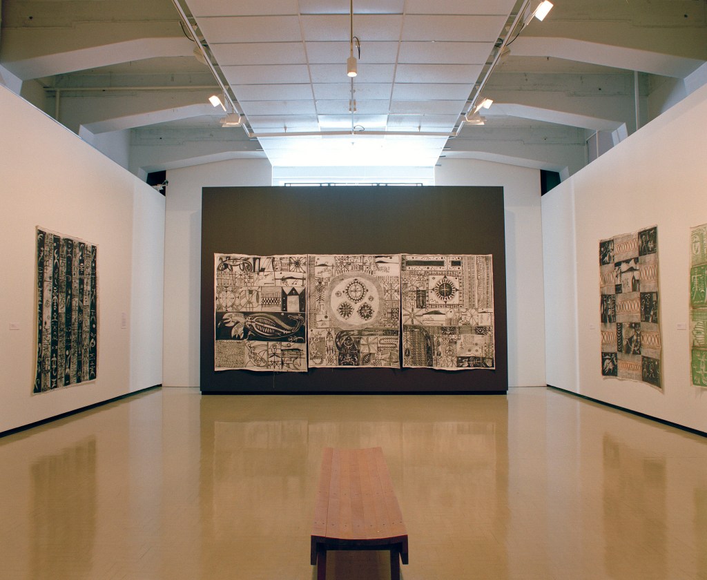The exhibition begins with Pule’s paintings of the 1990s which push the formal, thematic, and conceptual possibilities of hiapo, injecting new life and energies into this nineteenth-century artform. By the end of the decade, the recognisable signs of hiapo all but disappear from Pule’s paintings under dramatic new configurations and colours. Yet traces always remain of the form Pule describes as offering ‘pathways for me to follow, creating a destination for me, a space to confirm my obligations as an artist’.