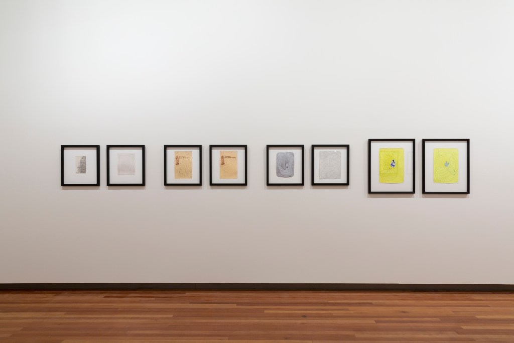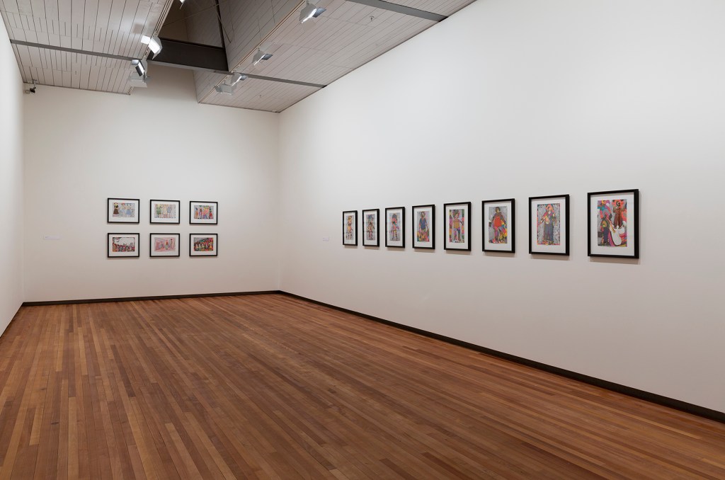 The show features King drawings that appear to take Māori motifs as a point of departure. King’s father, Douglas, a Pākehā, was a teacher and translator of te reo (he gave his daughter the middle name Te Kahurangi or ‘treasured one’). As a child, King drew on sheets of paper featuring Māori motifs that her father used in his work. She responded imaginatively and incorporated these found motifs into her own visual language, which has continued to expand in this way over the intervening decades. Another suite of drawings is based on paper dolls, which were sent to King by musician Alastair Galbraith.