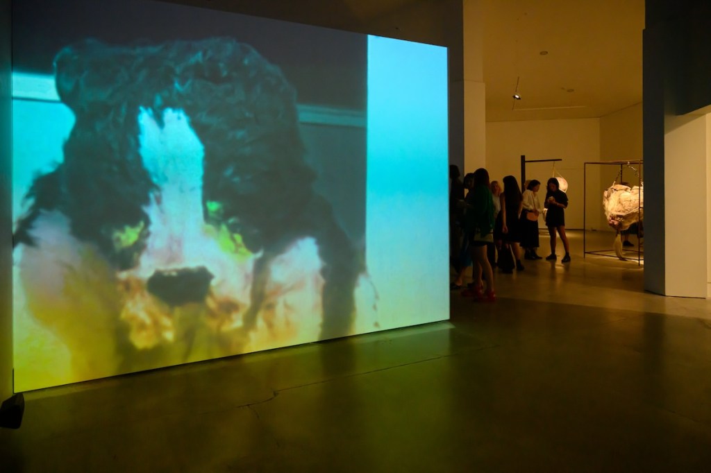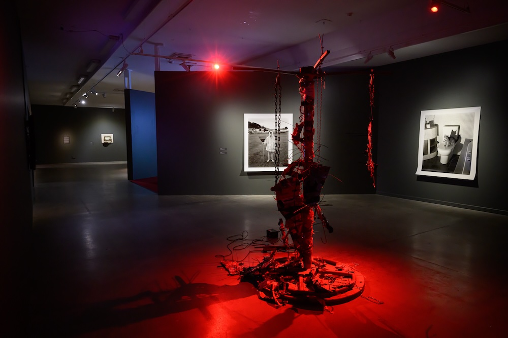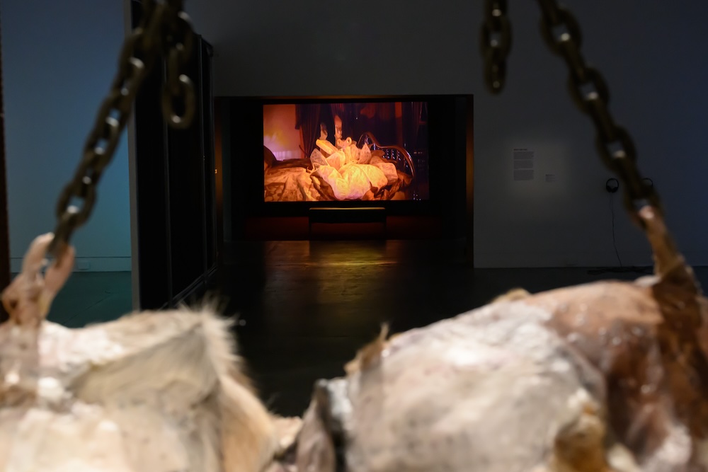 Movie references can be spotted throughout the exhibition, from the demonic dog of Cujo (1983) to Buffalo Bill’s dance from The Silence of the Lambs (1991). However, horror is conjured most powerfully through these artists’ psychological explorations of family, place and memory—in the carpet tiles of a cultish Pentecostal church, the acrid smells of a haunted house, or the suburban disquiet of Vampire Grove.