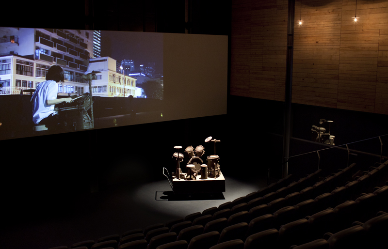 The exhibition regularly pushes sculpture outside of itself and outside of the gallery. Regan Gentry’s sculptural rendition of a Colin McCahon waterfall painting spurts out of a second floor window into a pool below. Raewyn Martyn’s folding stools as mobile sculptures can be checked out from the front desk and used throughout the gallery, or taken into the outside world. The exhibition has left a permanent trace on the city with Shane McGrath’s helter-skelter ride/Tatlin memorial inspired public sculpture in Glover Park.