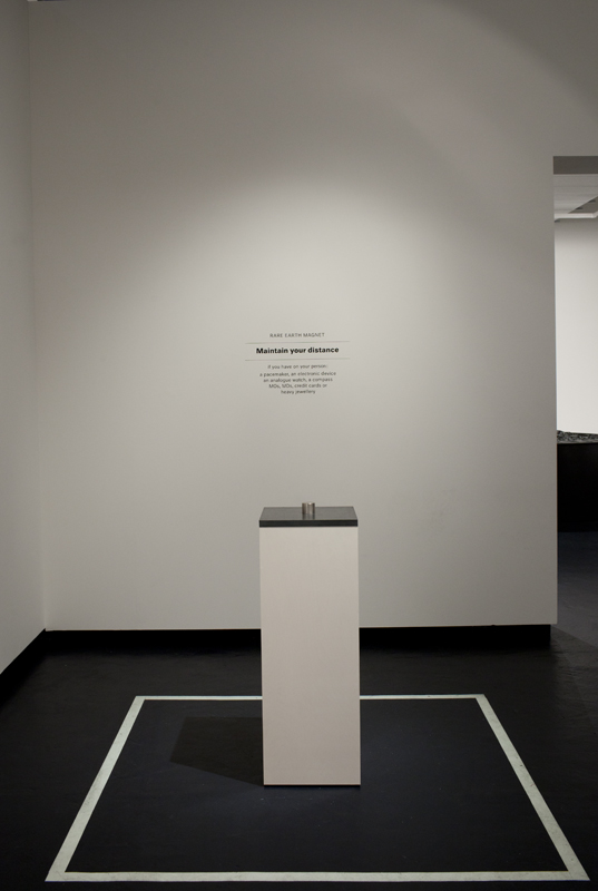Glen Hayward, Seung Yul Oh, and Scott Eady play on sculpture’s ability to deceive and prank, while Brett Graham co-opts its monumental form for more politicised purposes—to protest the claims around ownership and management of the Maungatautari Reserve. Lisa Walker’s absurdly oversized broach made for the gallery exemplifies two other threads of the exhibition: the entanglement of sculpture with other media (ceramics, jewellery, video, performance, sound, painting) and its potential to intervene within space and architecture to disrupt normal experience. Such interventions by Sian Torrington, Glen Hayward, and Ruth Thomas-Edmond point to the Gallery as the most obstinate object of them all.