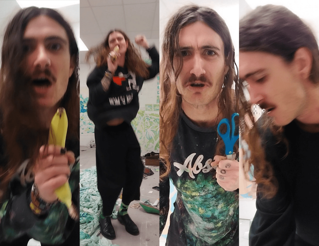 Wesley John Fourie’s HYPERBALLAD reimagines the classical myth of Narcissus through contemporary internet culture and pop music. These performances-to-camera are shot on phone or laptop in the artist’s studio in Ōtepoti, and use things to hand (hammers, scissors, bananas, wine bottles, coffee jars) as stunt microphones to sing along to love songs dedicated to someone (or ‘something’) both real and abstracted on the other side of the screen. Part cathartic rambling, part karaoke goodness, Fourie takes on the role of the jester, the popstar, anyone seeking their fifteen minutes of fame. The videos invite us into a manufactured world of vulnerability, where the cliché of the tortured artist-in-the-studio meets Tumblr Girl style confessionalism, set against a pop music beat.
